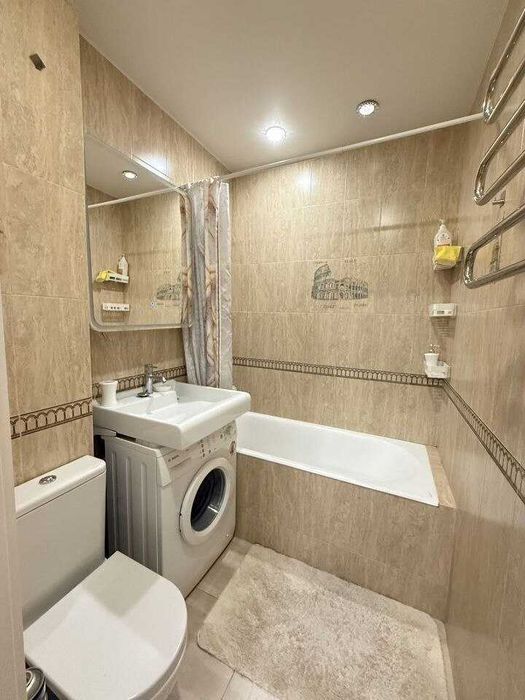 Квартира повністю облаштована меблями та всією необхідною побутовою технікою для комфортного життя. В кімнаті: диван кутовий , ліжко , стіл, шафа купе. Балкон засклениЇ. Є холодильник, пральна і посудомийна машини, телевізор, а також проведений інтернет.