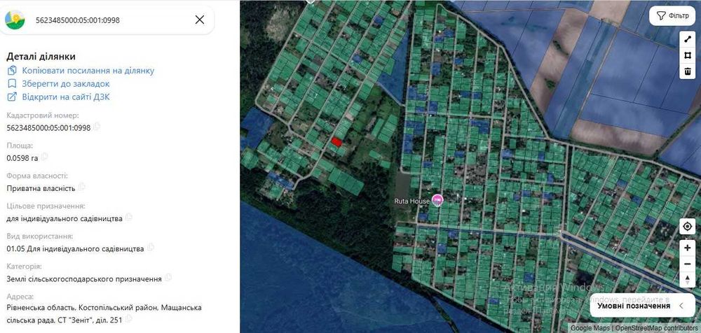 | Земельна ділянка: |