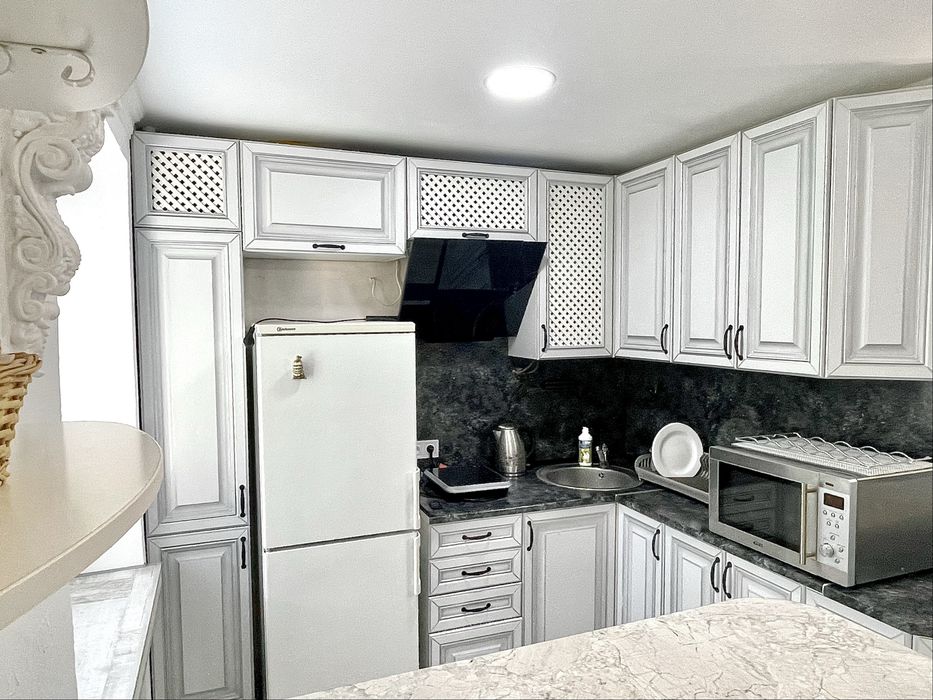 В квартирі сучасний, новий ремонт, великий закритий балкон. Меблі, пральна машина, газова колонка, електрична плита, 2-х спальне ліжко, посуд.