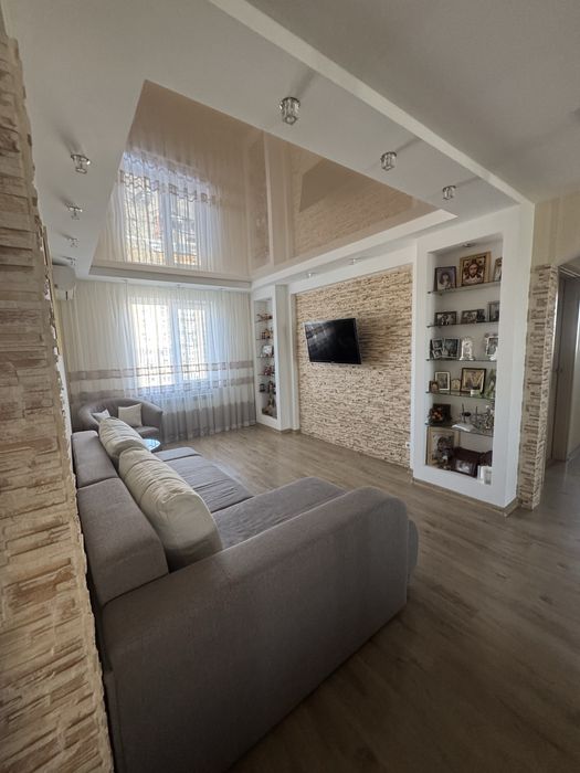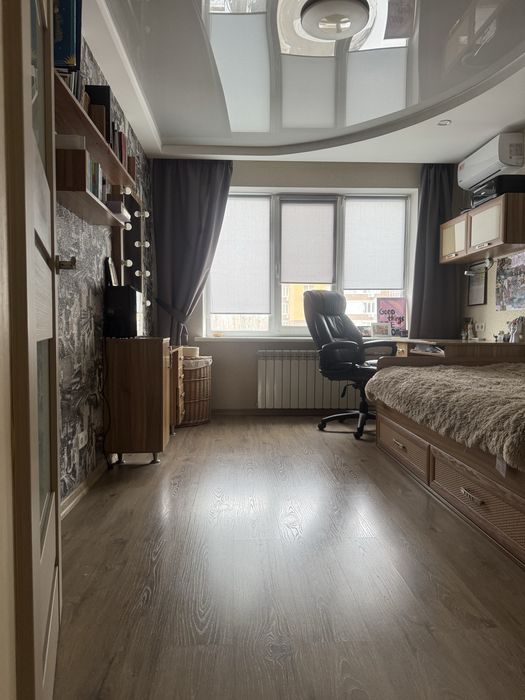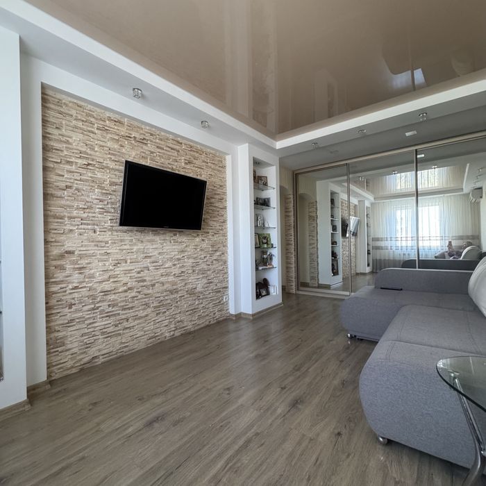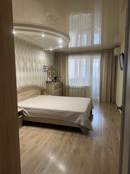 Соборний; Продам 3 х комн квартира Победа 2 собственник; Квартира с ремонтом 2019 г Мебель, техника остаётся, 2 балкона утеплены , на одном выведена батарея. Теплый пол : кухня, ванна, коридор. Кухня 10 кв м, ванная 3,6 , зал 21 кв, одна спальня 17, вторая 12, балконы: 4,4 кв м, и 7,7 кв м Напротив парка Прибрежный , окна на три стороны.