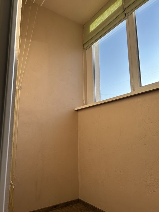 Ремонт: шпалери, вініл одним контуром, натяжна стеля біла матова, ванна кімната - кахель, столешня кухня/ванна акрил, балкон стіни фактурна штукатурка.