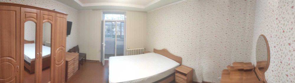 повноцінна спальна кімната з ліжком 160*200, шкафом, прикроватними тумбами, телевізором та столиком для макіяжу