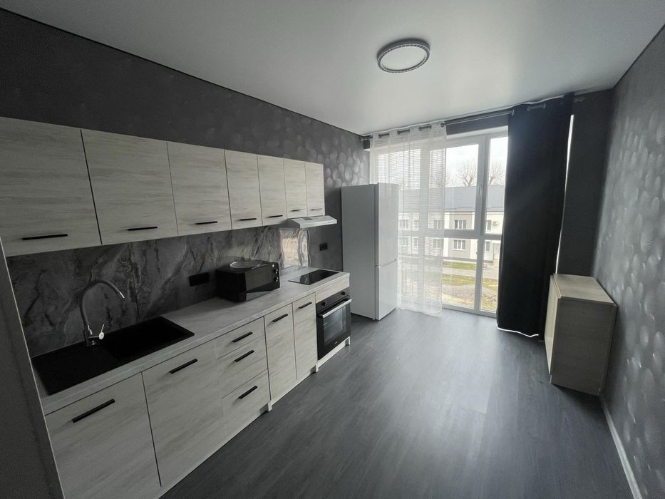 В квартирі новий ремонт, бойлер, пральна машина, мікрохвильова піч, ел. духовка, ел. варильна поверхня, чайник, холодильник, вікна виходять в двір, є дитячий майданчик.