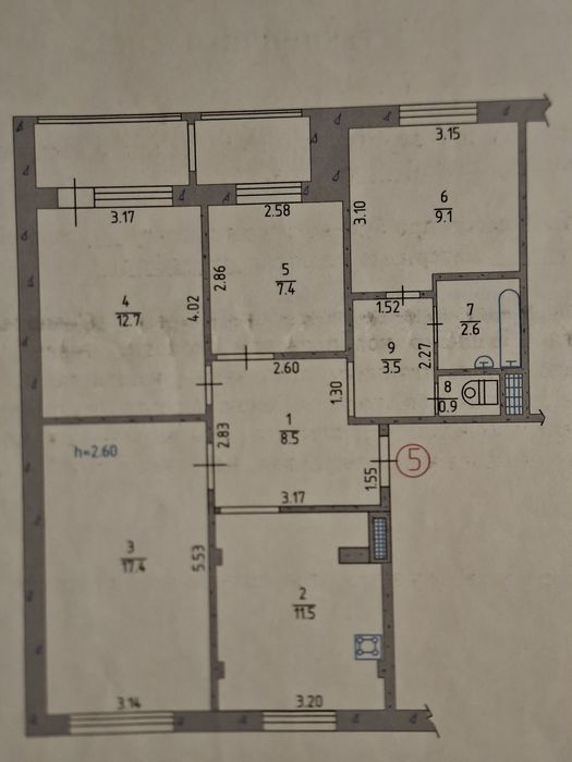 Раздельный санузел: Ванная и туалет расположены отдельно, что удобно для большой семьи.
