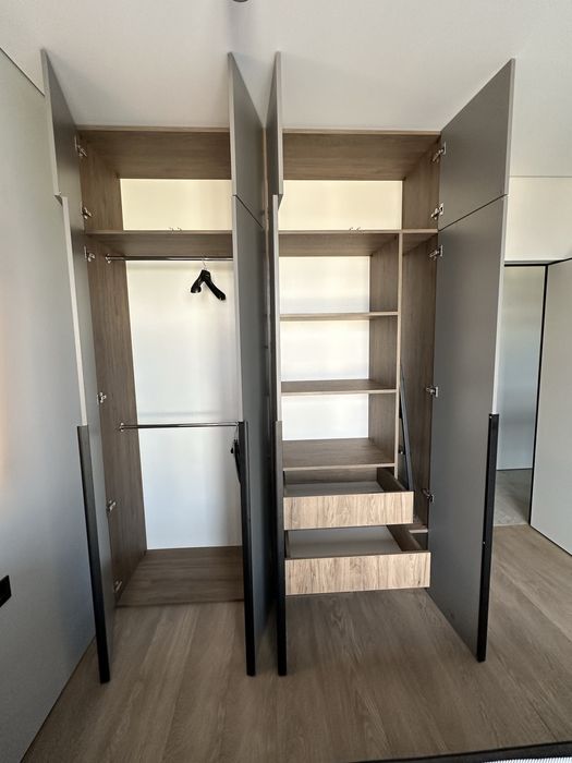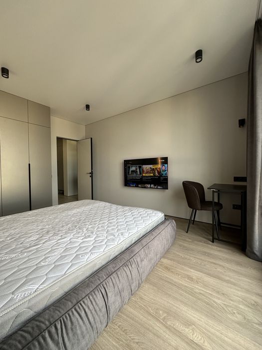 2 великих тв (55 та 50 дюймів). Кондиціонер Bosch. Двоспальне ліжко з підйомним механізмом та розкладний диван з механізмом пума для ще двох додаткових спальних місць.
