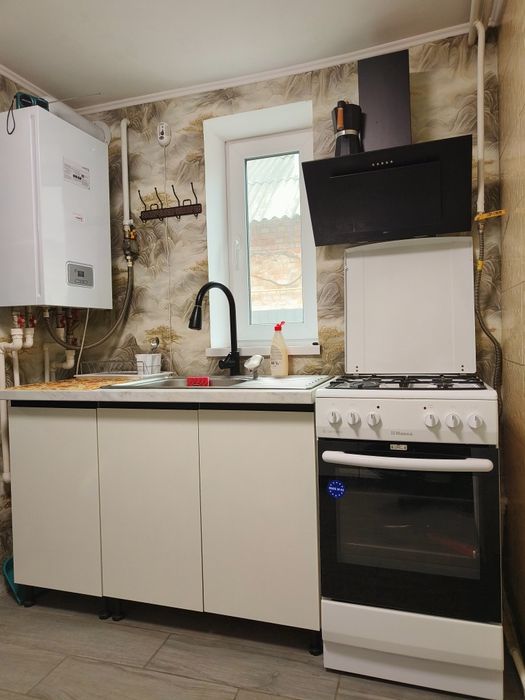 Півбудинку поруч з центром; Півбудинку поруч з центром в тихому , красивому місці , район Водоканалу. Дві кімнати , кухня , коридор , санвузол. Нова електрика, нова система опалення з надійним газовим двоконтурним котлом , централізована каналізація і водопостачання. В кімнатах натяжна стеля, вбудована шафа-купе,новий кондиціонер. На подвір'ї є гараж, сарай з підвалом, літній душ. Від будинку все в пішій доступності - до зупинки 1 хв. , до центру -15 хв. , зал.вокзалу -15 хв.