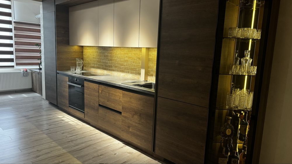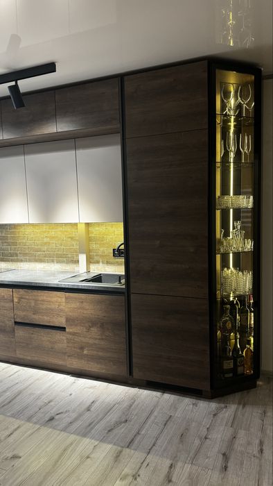 Робили ремонт для себе з прорахуванням кожної зони для ефективного використання . Меблі виготовлені за індивідуальними ескізами . Вмістимі та практичні .