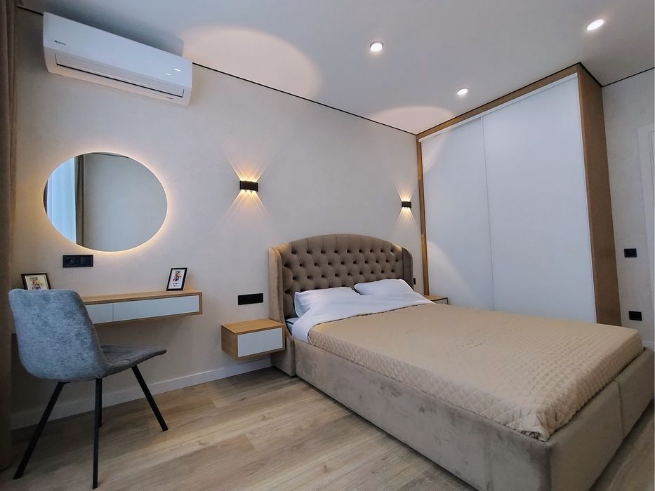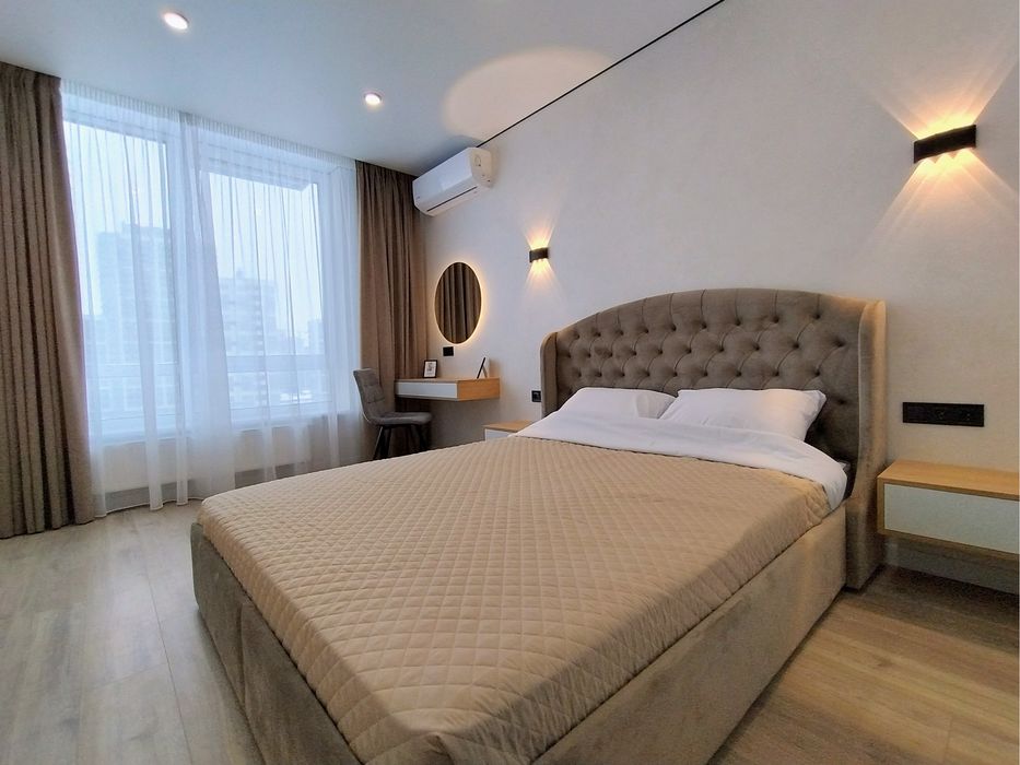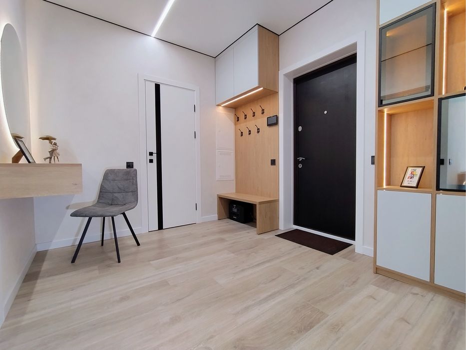Квартира з новим дизайнерським ремонтом, багато варіантів освітлення, вдало використаний простір квартири: велика кухня-вітальня, окрема спальня, окрема гардеробна кімната, простора вхідна зона, простора ванна з пральною та окремою сушильною машиною,бойлером, теплою підлогою, гігієнічний душ. Квартира укомплектована всією необхідною технікою (посудомийна машина, вбудований холодильник, пральна машина, сушильна машина, електрична рушникосушка, духова шафа, мікрохвильовка, варильна поверхня, зворотній фільтр Осмос, бойлер, 2 кондиціонери, телевізор, ліжко з підйомним механізмом, зручний великий розкладний диван, окрема гардеробна кімната).