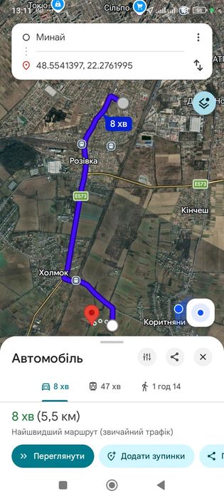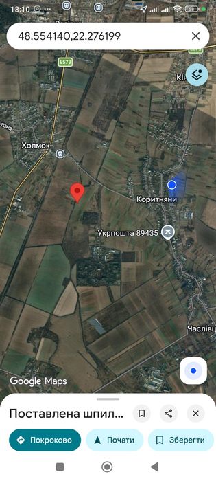 Ділянка знаходиться між Холмоком і Коритнянами