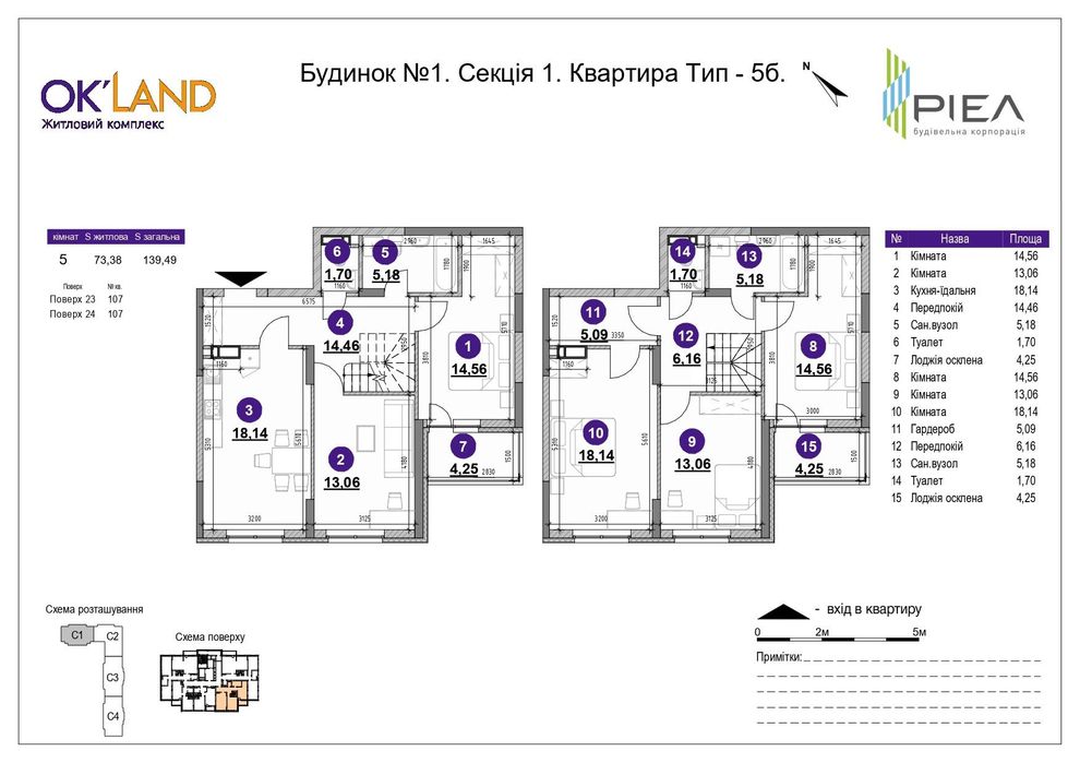 Дворівнева 5-кімнатна квартира 140 м². ЖК OKLAND, будинок №1, секція 1.