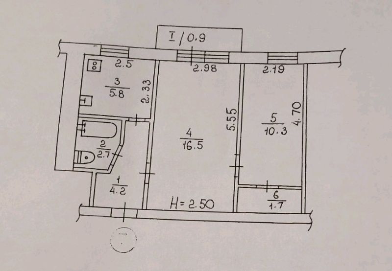 Кімнати – 16,5 та 10,3 м² (прохідні)