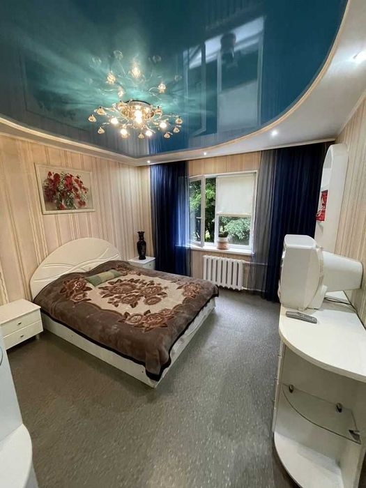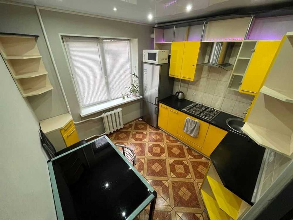 З сусідом тамбур на двох (окремі двері). Телевізори у кожній кімнаті + Wi-Fi. У спальні-велике біле ліжко; у кімнаті розкладний диван. Є кондиціонер ЗИМА-ЛІТО ! Пральна машина + сушарка + бойлер (нова техніка, пів року тому куплено) + нова проводка під техніку.Багато зон та місця для зберігання речей та одягу, величезна шафа купе у спальні + тумба велика, під ліжком великі ящики для зберігання речей. У коридорі - дві-три шафи-купе+ тумба для взуття, на кухні місткі свіжі жовті меблі + скляний стіл зі стільцями. Санвузол роздільний (ванна-туалет). У великій кімнаті вбудований електрокамін + робоча шкільна зона та великий компʼютерний стіл з меблями. Квартира після ремонту, буде друга здача. Килими після хім.чистки, двері нові + техніка, євро-вікна, сучасні меблі.