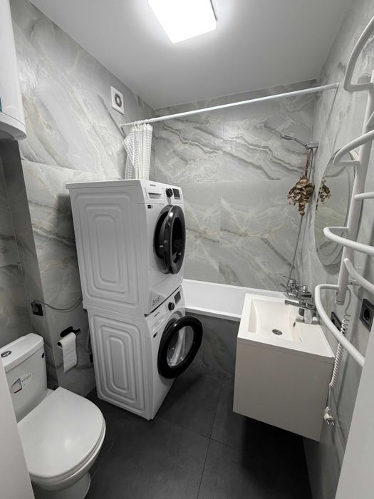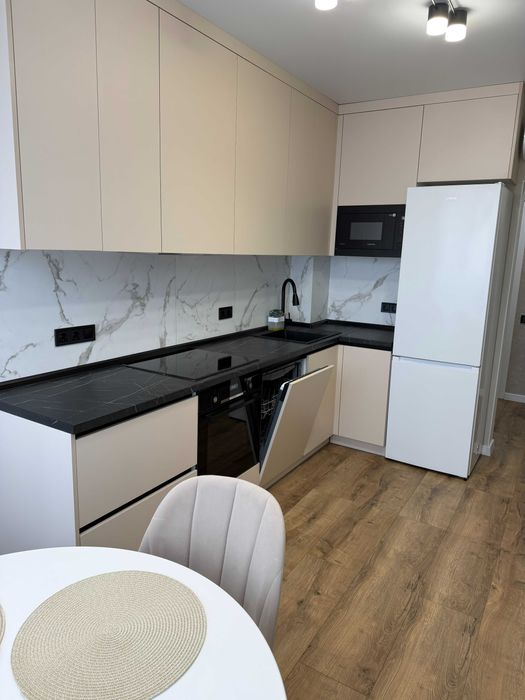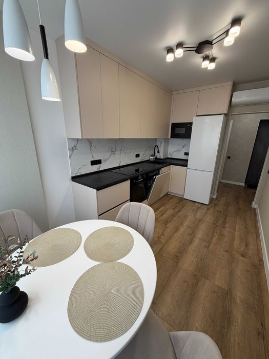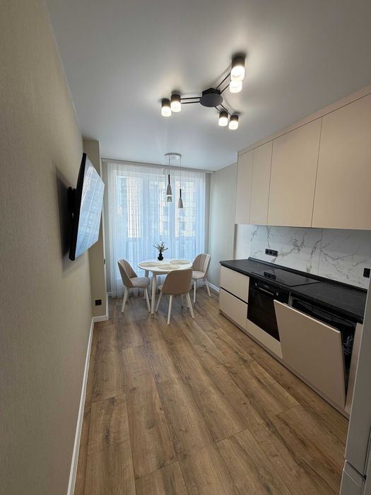 Квартира повністю з усіма меблями та технікою: два телевізори самсунг діагонлями 50, пральна та сушильна машина, холодильник, кондиціонер, мікрохвильова піч, варильна поверхня, духовка та повнорозмірна посудомийна машина Bosch, кондиціонер, відеодомофон.