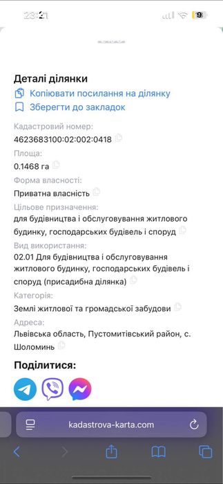 | Земельна ділянка: |