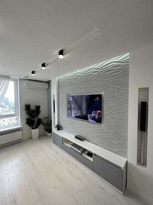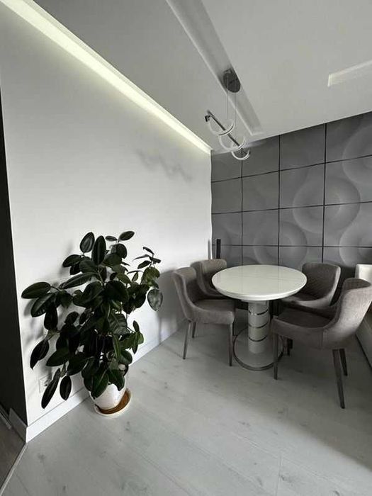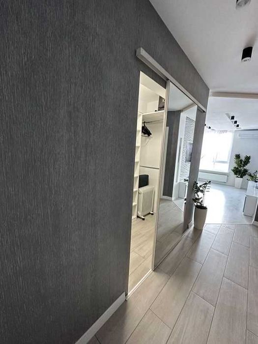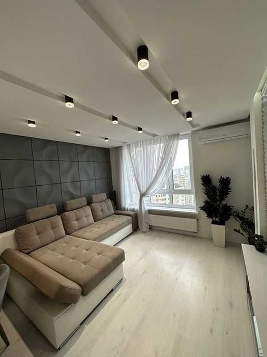 Квартира площею 50 м², знаходиться на 12 поверсі, з панорамними вікнами і гарним видом. Зроблений новий дизайнерський ремонт. Поруч River Mall, метро Осокорки у пішій доступності, поруч супермаркети, аптеки, кав’ярні.