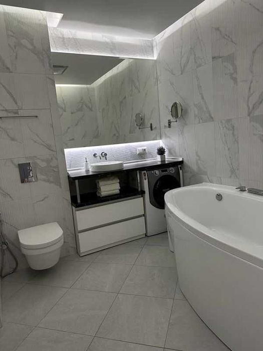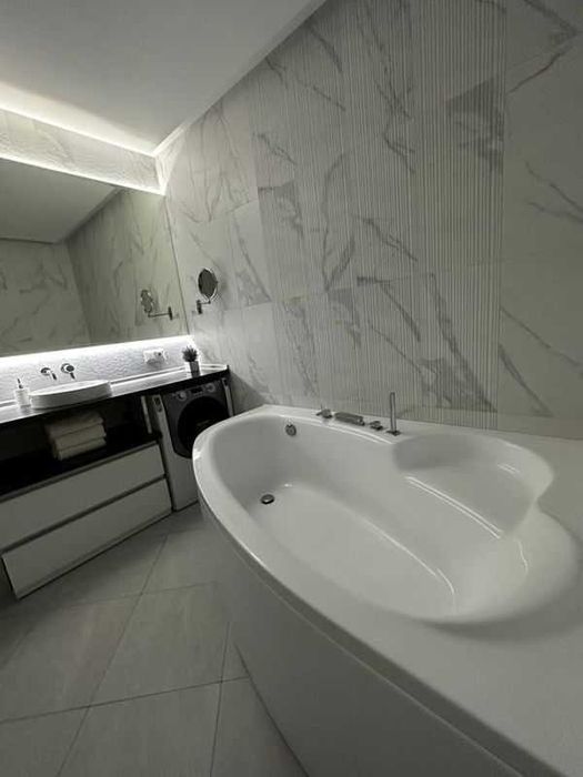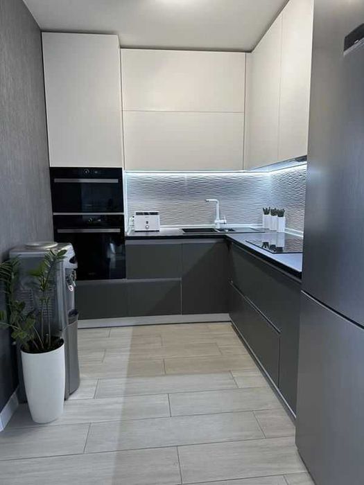 Квартира повністю укомплектована: індукційна плита Bosch, великий холодильник Bosch, нові духовка і мікрохвильова піч Whirlpool, бойлер, кондиціонер, пральна машина Hotpoint, пилосос, чайник, тостер, два телевізори Samsung і Philips, кабельне і цифрове ТБ. Є охоронна сигналізація.