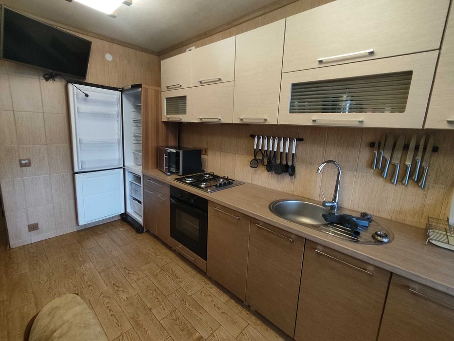 Кухня повністью обладнана є духовий шкаф, мікрохвильовка. пральна машина.