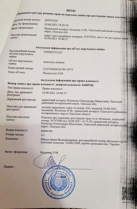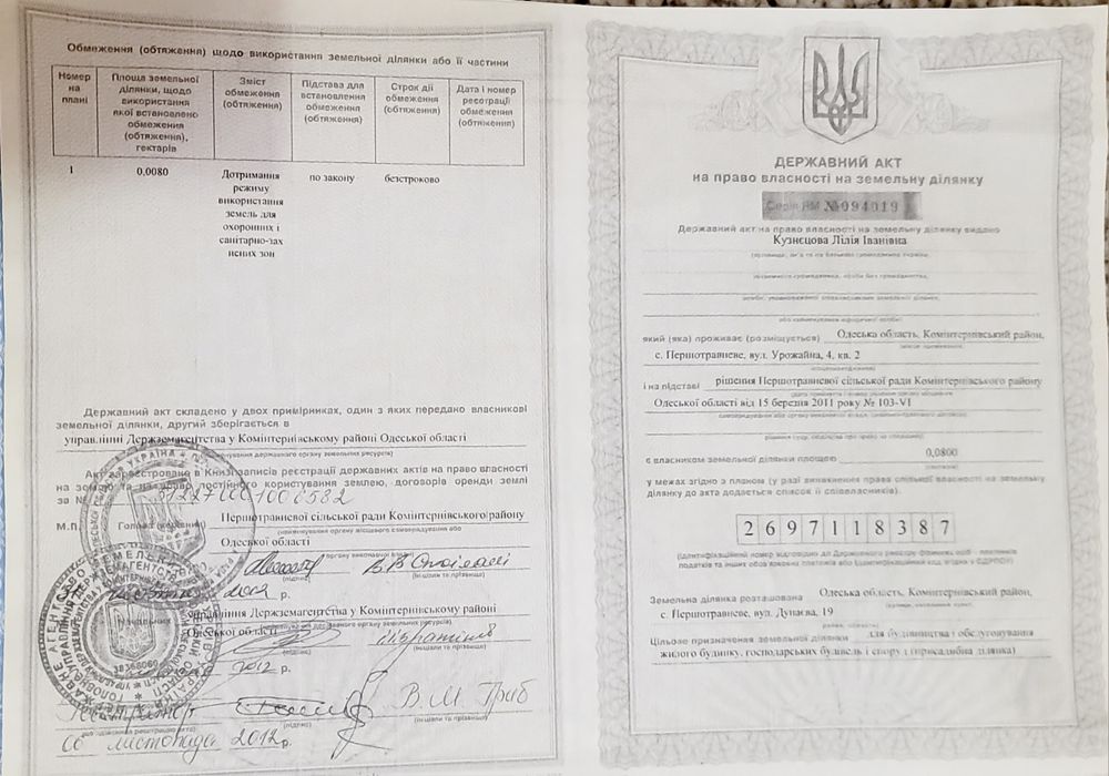 | Земельна ділянка: |