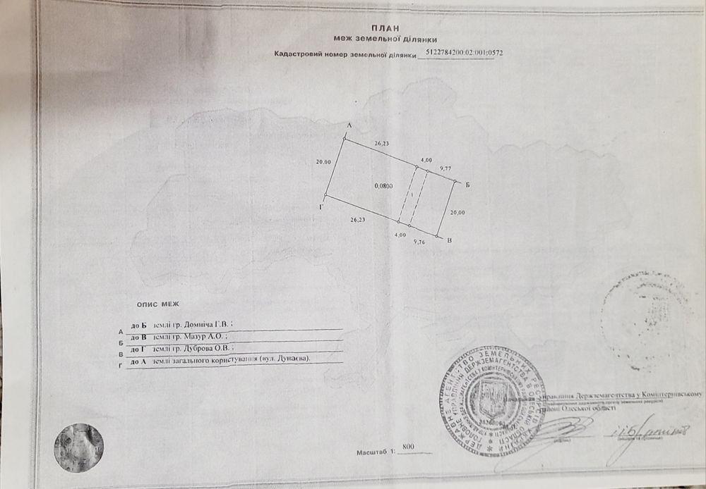 Продам свою земельну ділянку с.Причорноморське (с.н.Першотравневе); Продам земельну ділянку 8 соток, с. Причорноморське (Першотравневе стара назва)вул. Дунаєва 19