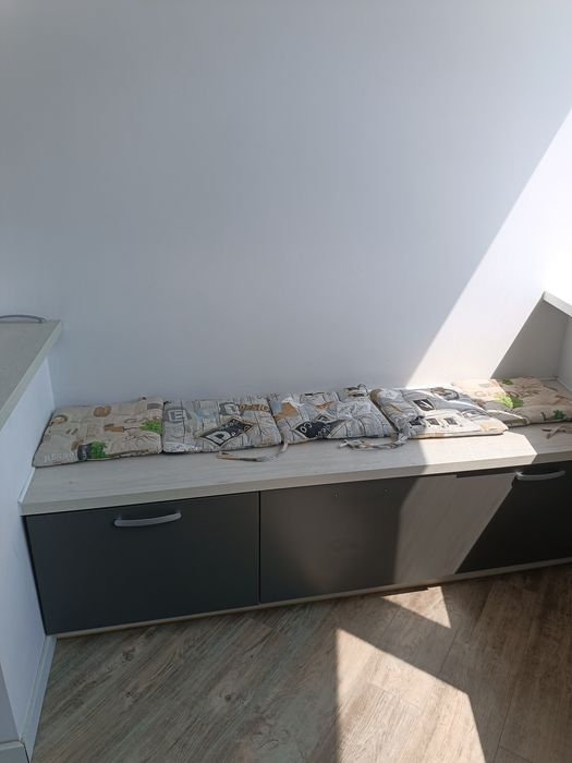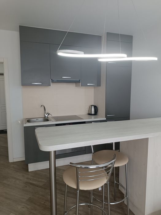меблі: вбудовані кухня, двоспальне ліжко з ортопедичним матрацом, два дивани, шафа-купе, шафи у всіх приміщеннях, барна стійка і стільці, на лоджії – стіл і тапчан;