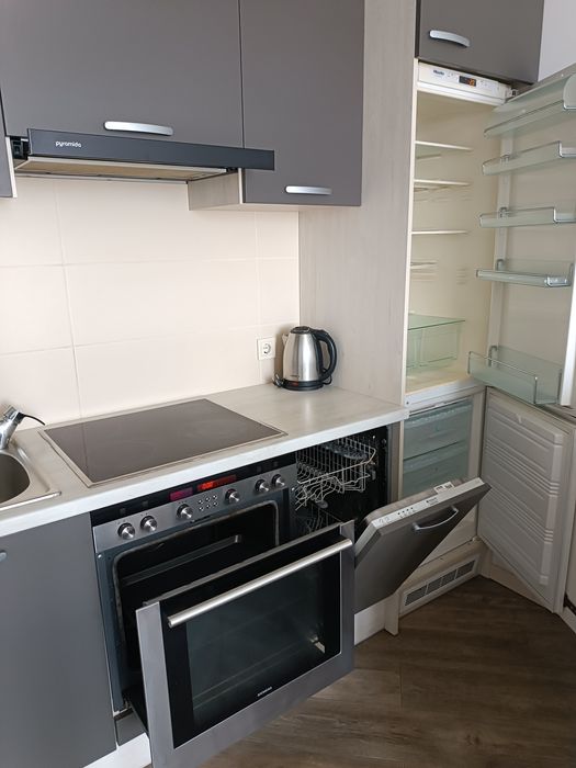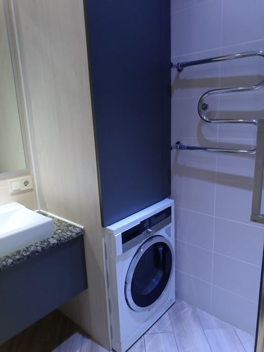 побутова техніка: вбудовані холодильник, варильна поверхня, духова шафа, посудомийна машина, пральна машина з сушкою;