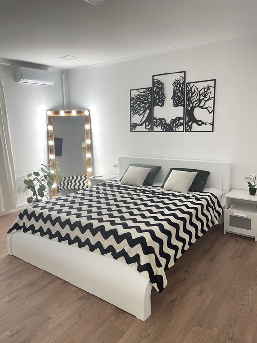 Дві спальні в кожній: двоспальне ліжко з ортопедичним матрацом та комфортний розкладний диван, шафа, дзеркало, ліжко, ковдри, подушки, рушники.