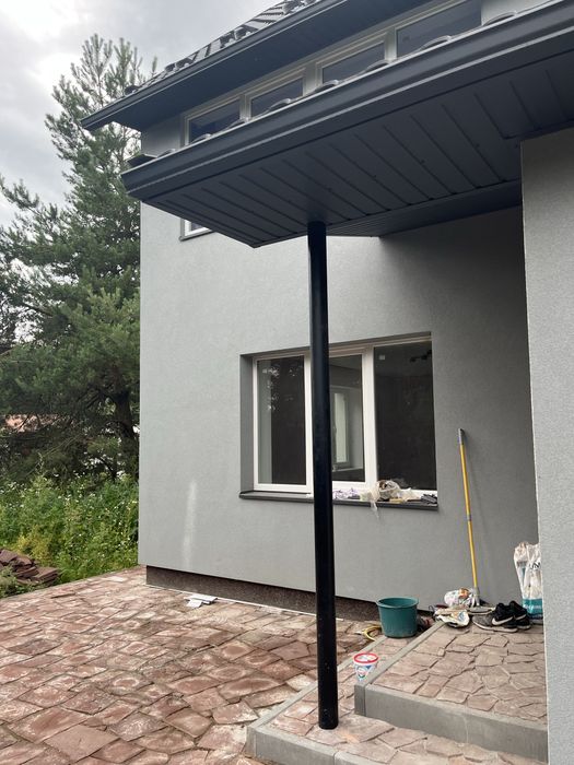 Будинок збудований з цегли, має утеплення, сучасні вікна та дах.