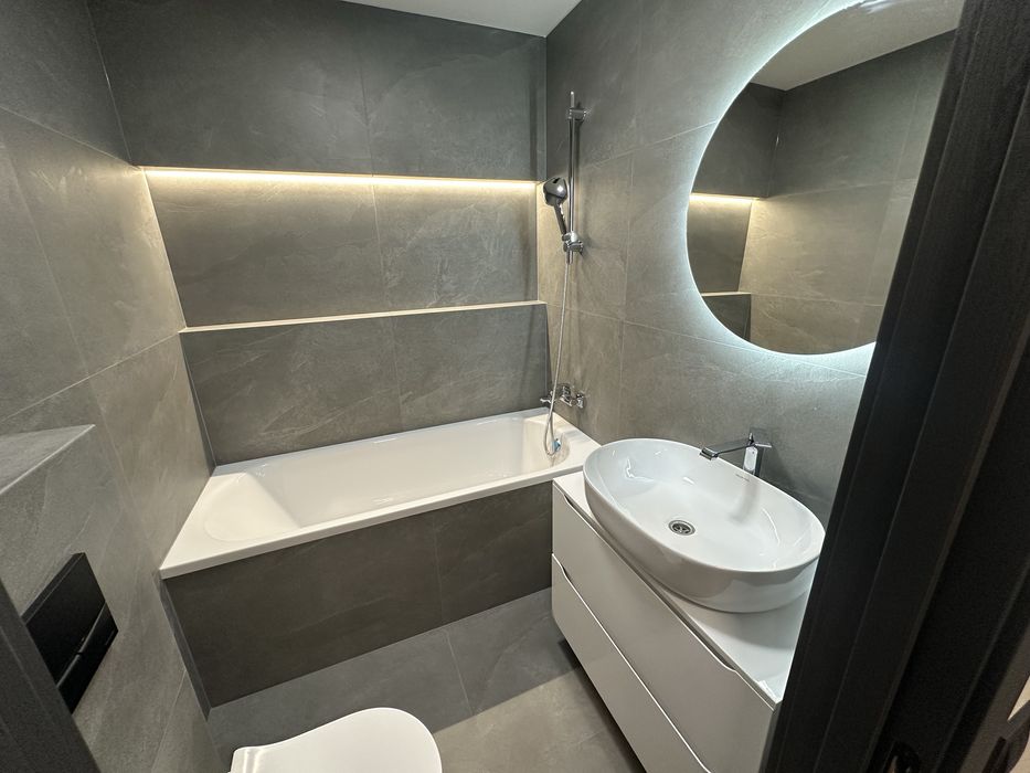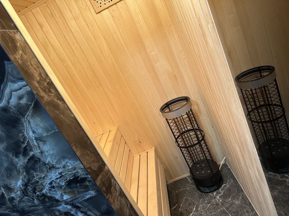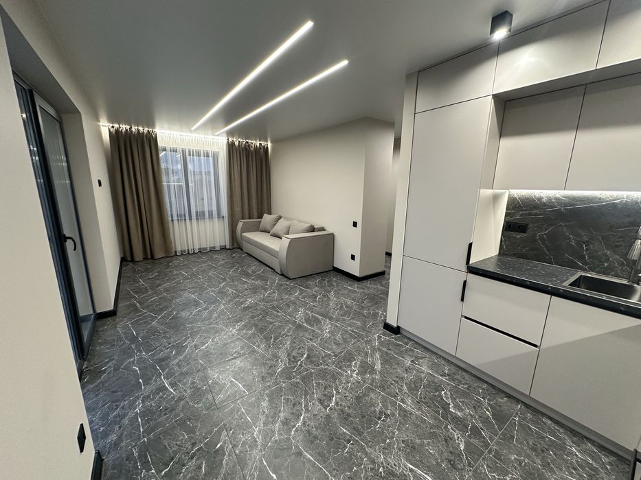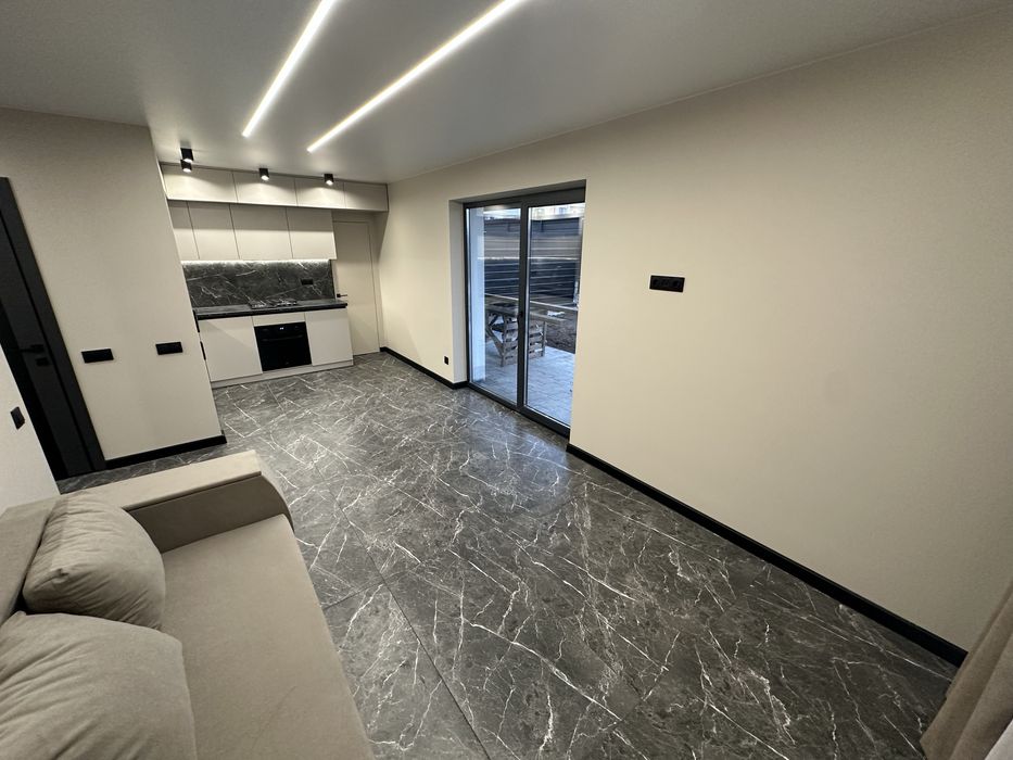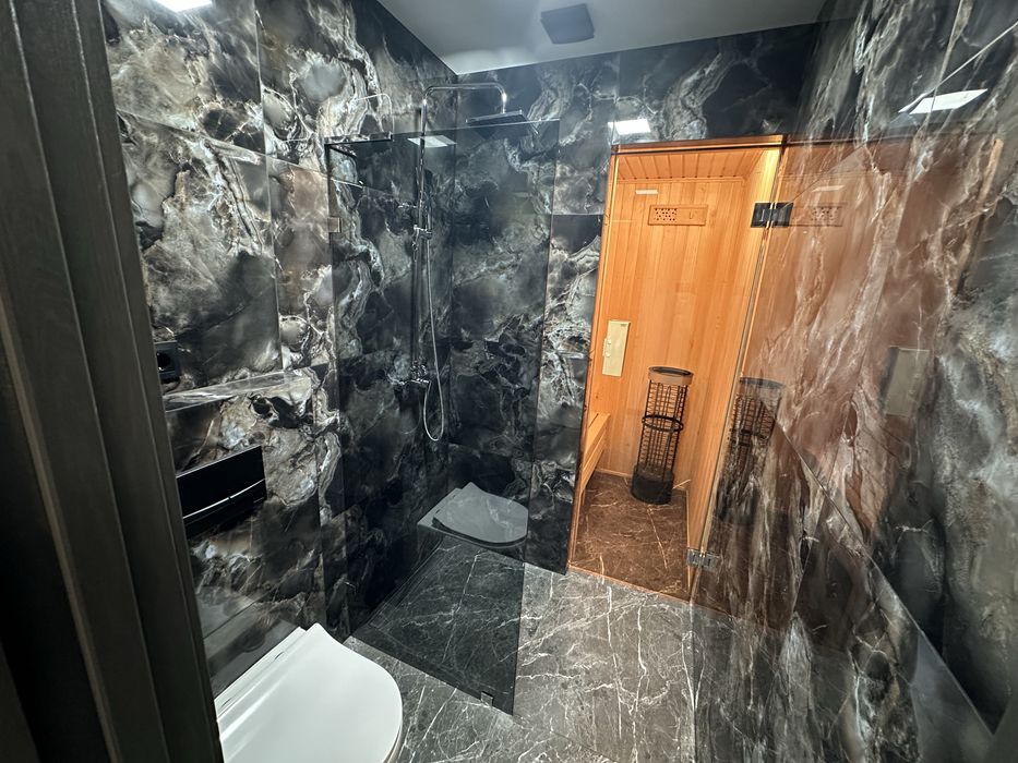 З новим ремонтом та меблями!!! Три спальні , кухня-вітальня(студія), два санвузли, сауна на двох людей) , тераса, котельня - пральня.
