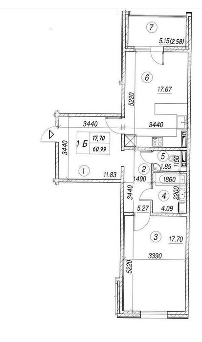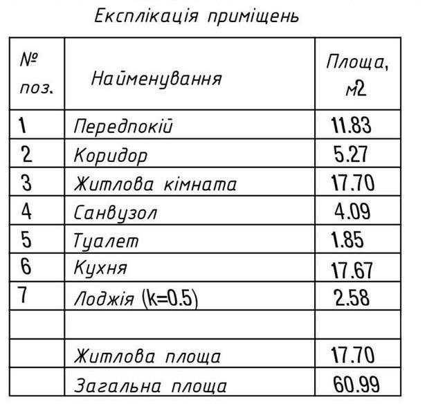 Площа — 60,99 м.кв