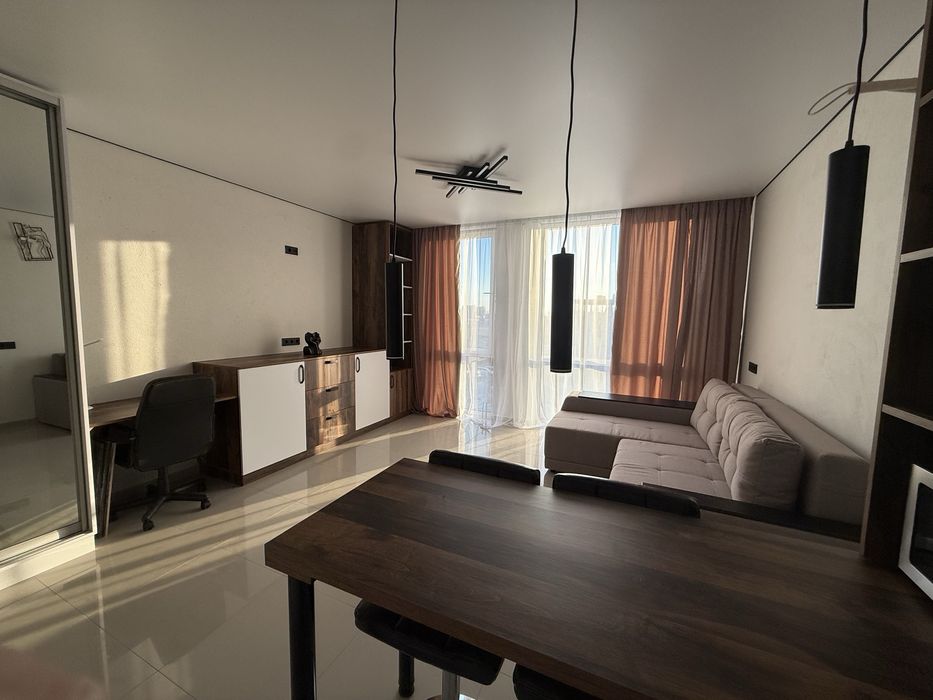 Продам 1-ную квартиру ЖК Sofihouse; Продается шикарная квартира с новым ремонтом! В квартире никто не жил. Дом клубного типа с красивой территорией! Детские площадки, зеленая зона, фонтаны. На крыше лаундж-зона. В квартире теплые полы по всему периметру, вся мебель сделана под заказ, дорогая бытовая техника. Плюс можно приобрести кладовку 4 кв.м. на 3 этаже (5 тыс$)