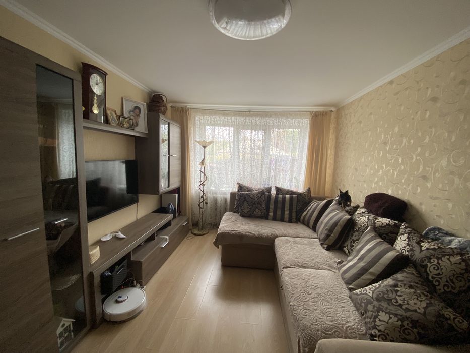 Квартира утеплена пінопластом, стіни та підлоги з підвалу. Хрущовка, кімната прохідна.