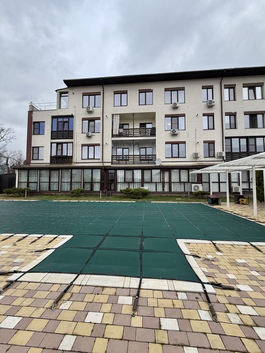 - територія з басейном та тенісним кортом