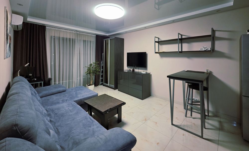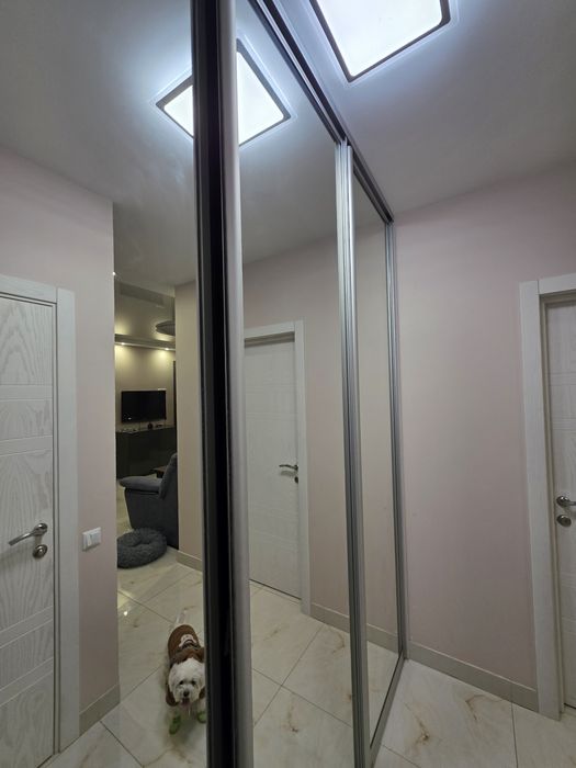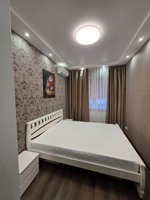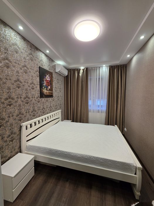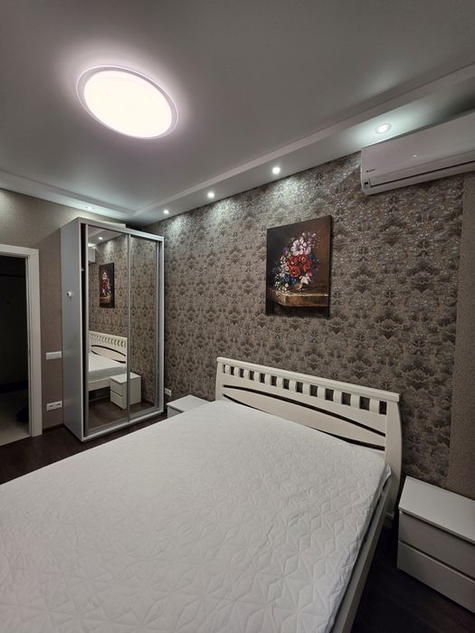 У спальні двоспальне ліжко, є комод, телевізор, 2 кондиціонери, вбудована шафа в корідорі, також ще 2 шафи в кімнатах, робочий стіл, монітор. Велика кухня з куточком для відпочинку.