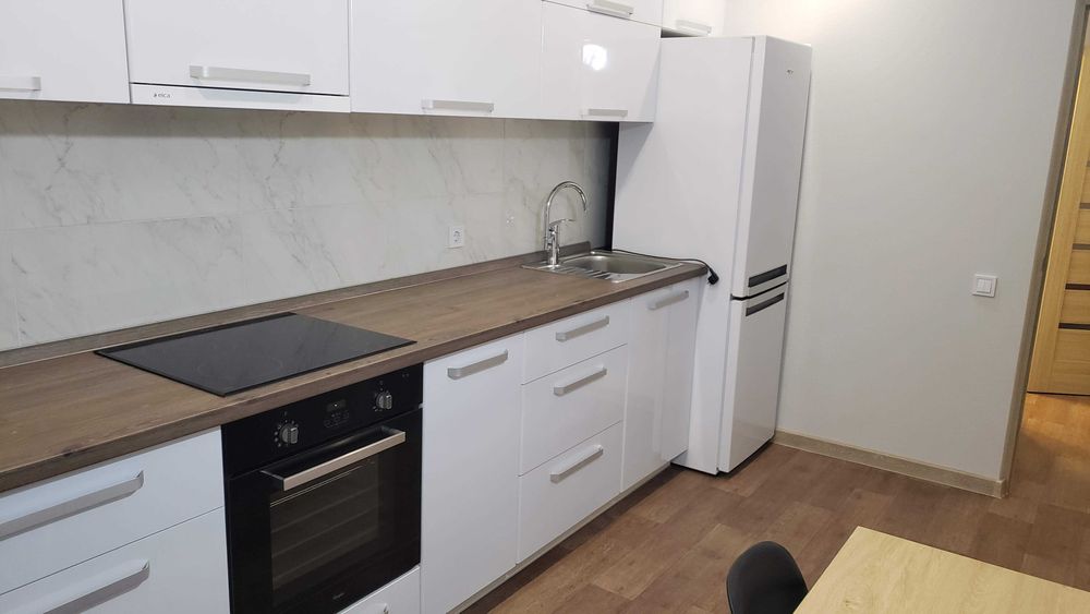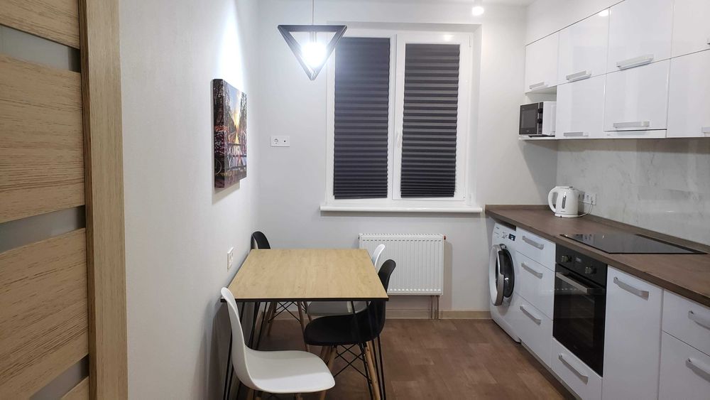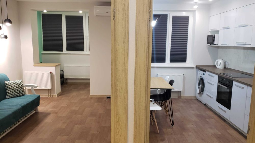 Слобідський; 1-кімнатна квартира з авторським ремонтом, закритий ЖК Макіївська (вул. Качанівська 15); Здається стильна квартира з авторським ремонтом, у якій усе продумано для комфортного проживання. Повністю укомплектована необхідною технікою: пральна машина, посудомийна машина, бойлер, телевізор, мікрохвильова піч, духовка, електроплита, холодильник, чайник, роутер і кондиціонер. Уся техніка від Whirlpool, сантехніка - Grohe. Є окрема гардеробна кімната, а також встановлений лічильник тепла, що дозволяє контролювати витрати.