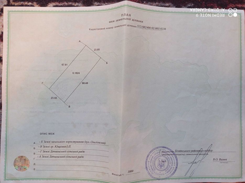 Ділянка під будівництво приватного будинку, ведення дом.господарства тощо. Держ.акт на право власності. ТОРГ.