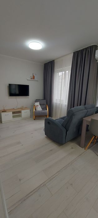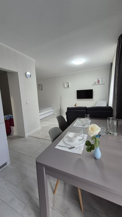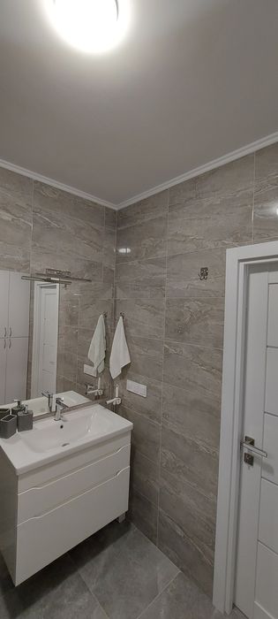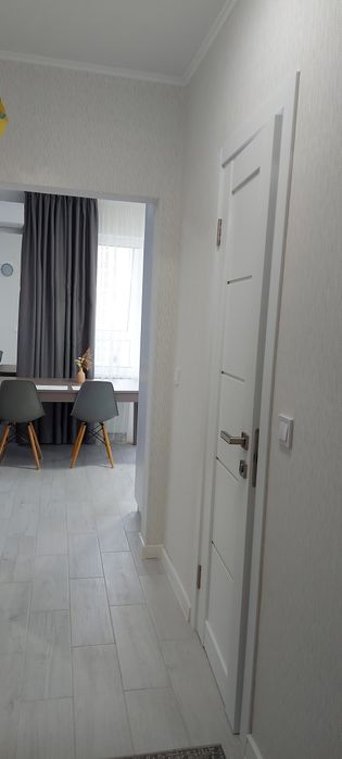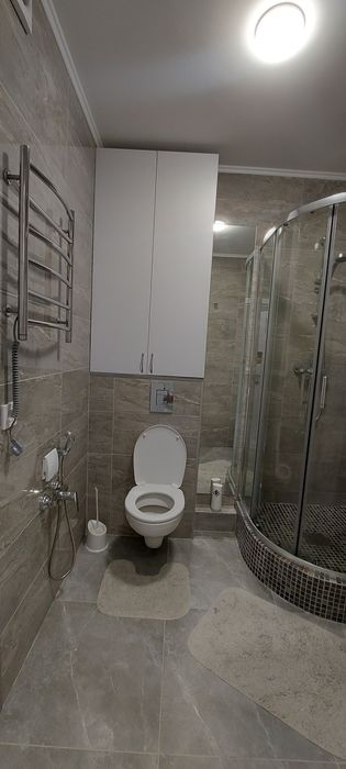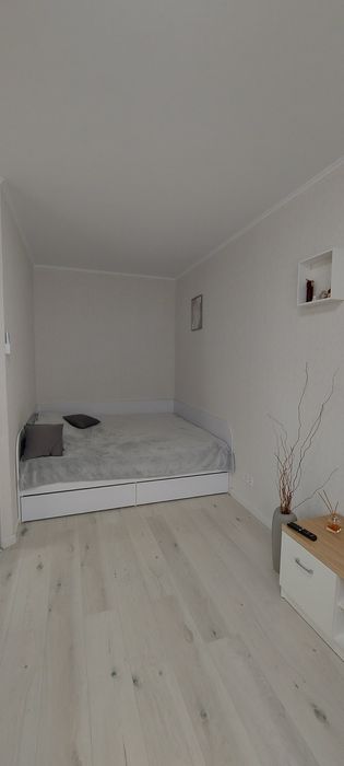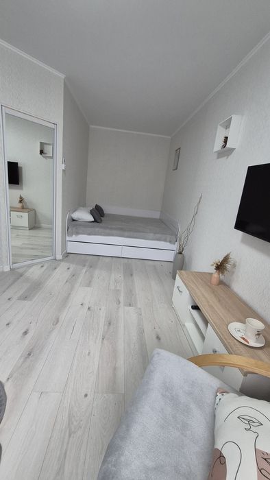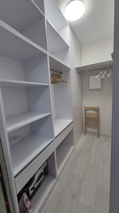 Для комфортного сну передбачене велике ліжко з ортопедичним матрацом(200×180), а для речей облаштована містка гардеробна кімната. У квартирі є весь необхідний посуд, білизна, пилотяг.