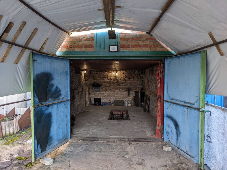 • Гараж (4×6 м) — цегляний, оглядова яма, пічка