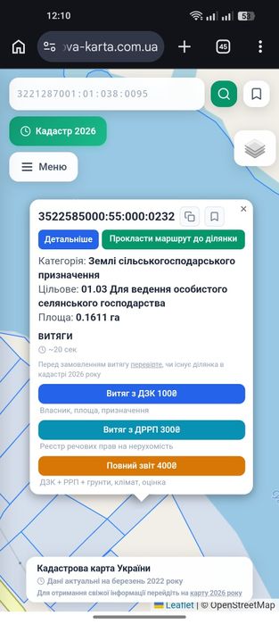| Земельна ділянка: |