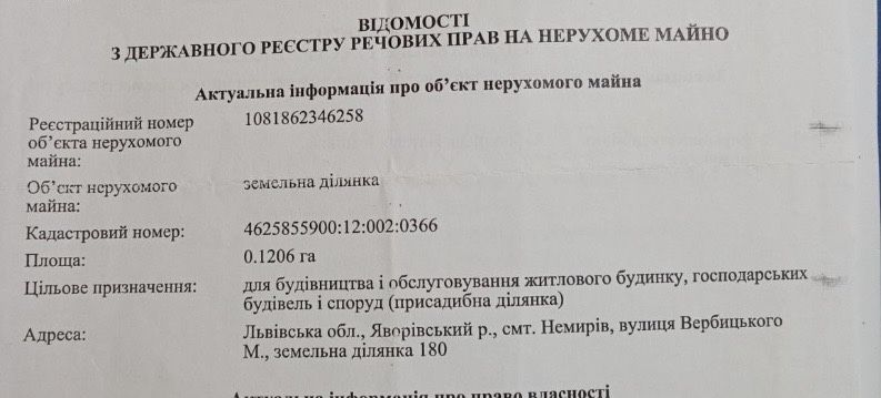 продам землю Львівська область Яворівський район смт Немирів