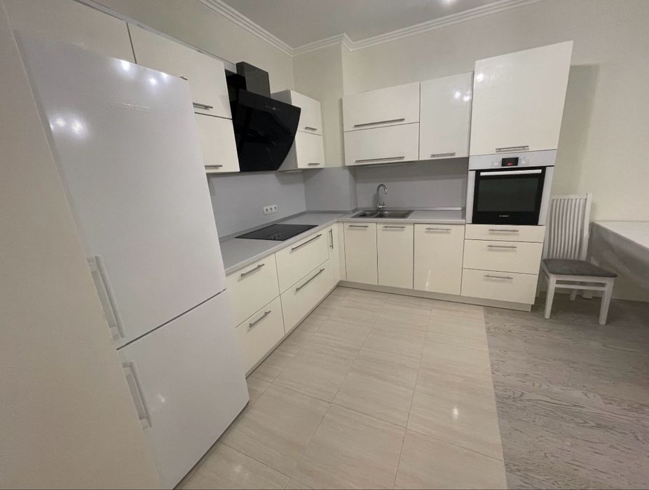 Квартира укомплектована всією необхідною технікою: духова шафа, варильна поверхня, пральна та посудомийна машина фірми Bosh, холодильник Liebherr, бойлер, підігрів підлоги, 2 кондиціонери.