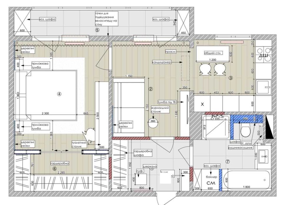 * Окрема спальна кімната з великим гардеробом та місцем для роботи