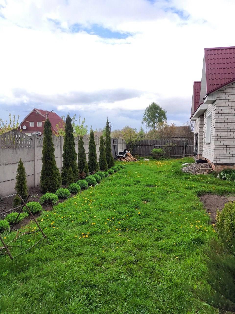 Продам новий будинок з гаражем, 4 кімнати. Будинок потребує внутрішніх робіт. Земельна ділянка 10 соток. Є окреме приміщення бані з гаражем. Вода, електрика є.