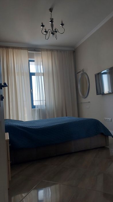 Приморський; Квартира в оренду ЖК Санторіні; Квартира 2-х кімнатна з гарним ремонтом. Місцезнаходження надзвичайно вдале: поруч пляж, школа, сквер з дитячим майданчиком. В 5 хвилинах Нова пошта, Сільпо багато кафе та ресторанчиків, в будинку є супермаркет Таврія. Можна прогулятися вздовж моря до Аркадія ( пішки 20 хвилин). Кухня дуже простора з якісною технікою: духовка та холодильник Boss . Кузня- студія має вихід на терасу. Спальня з великим ліжком та гардеробною, з виходом на терасу. Прихожа має також дуже великий гардероб . Будинок має генератор. Площа 65 кв.м поверх 5.