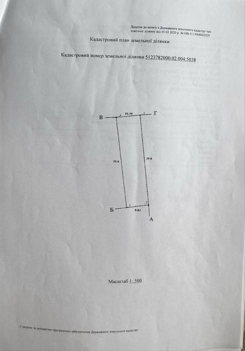 -Кадастровий номер: 5123782000:02:004:5038
