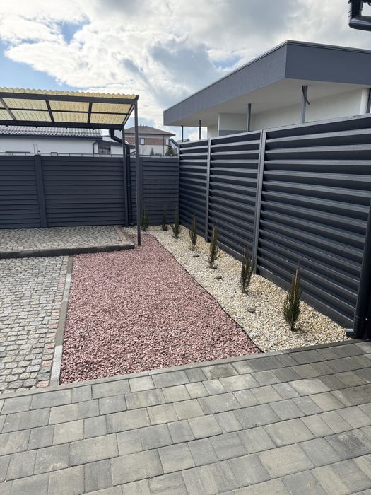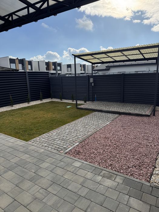 Паркування на 2 авто, тротуарна плитка, зроблений ландшафтний дизайн, автоматичний полив, навіс на терасі та зона барбекю. Ціна 130000дол.