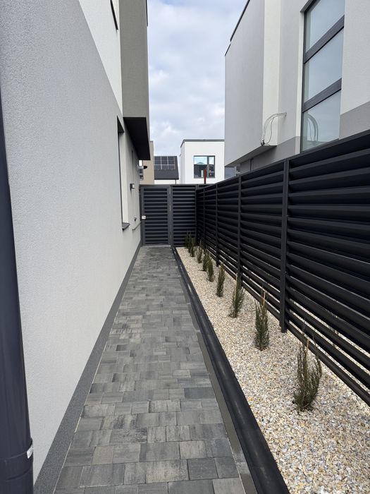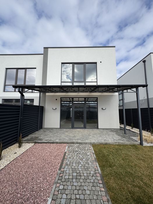 Площа дуплекса 128 кв.м., розташований на ділянці 2,35 соток. Три спальні кімнати, кухня-студія з виходом на задній двір, 2 санвузла та хоз кімната.