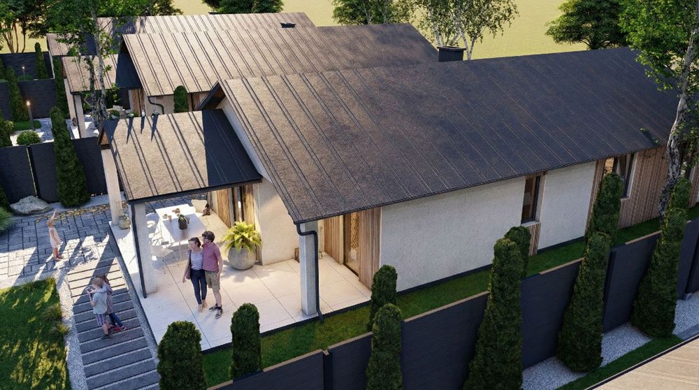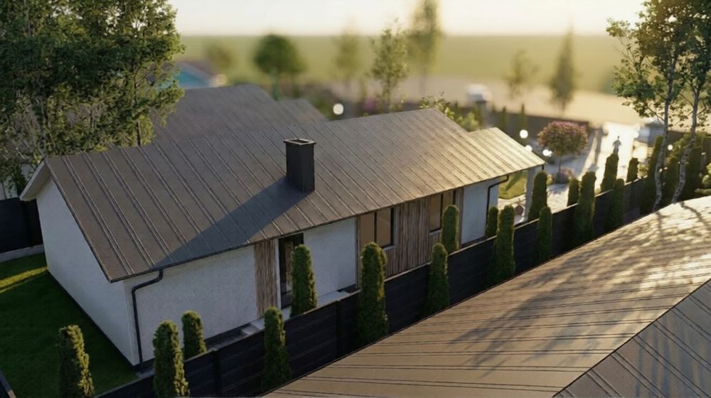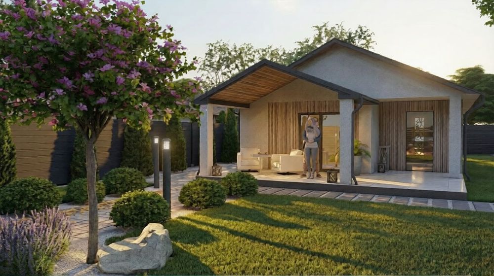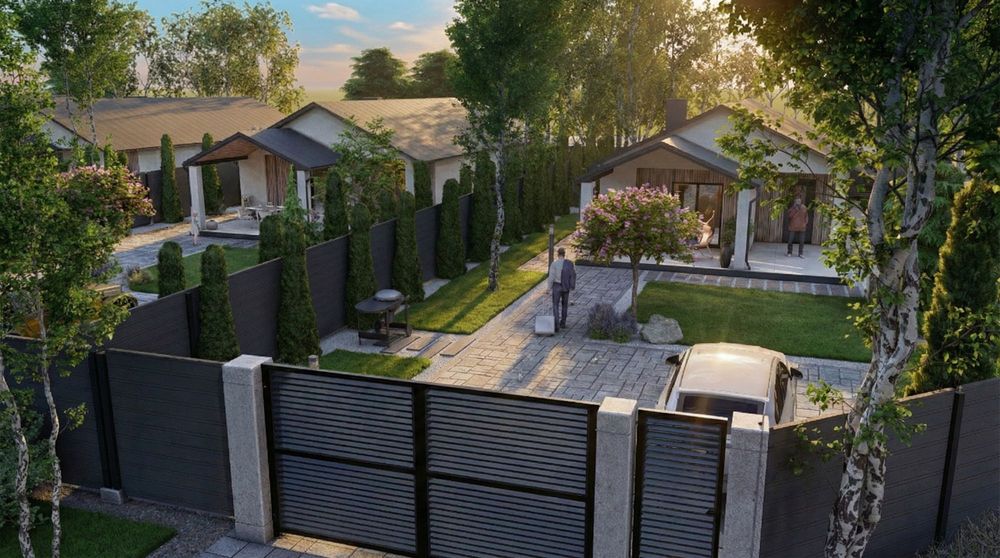 Продаж сучасного одноповерхового будинку на затишній ділянці поруч із лісом. Зараз найвигідніший момент для покупки — на етапі фундаменту, коли ціна мінімальна.