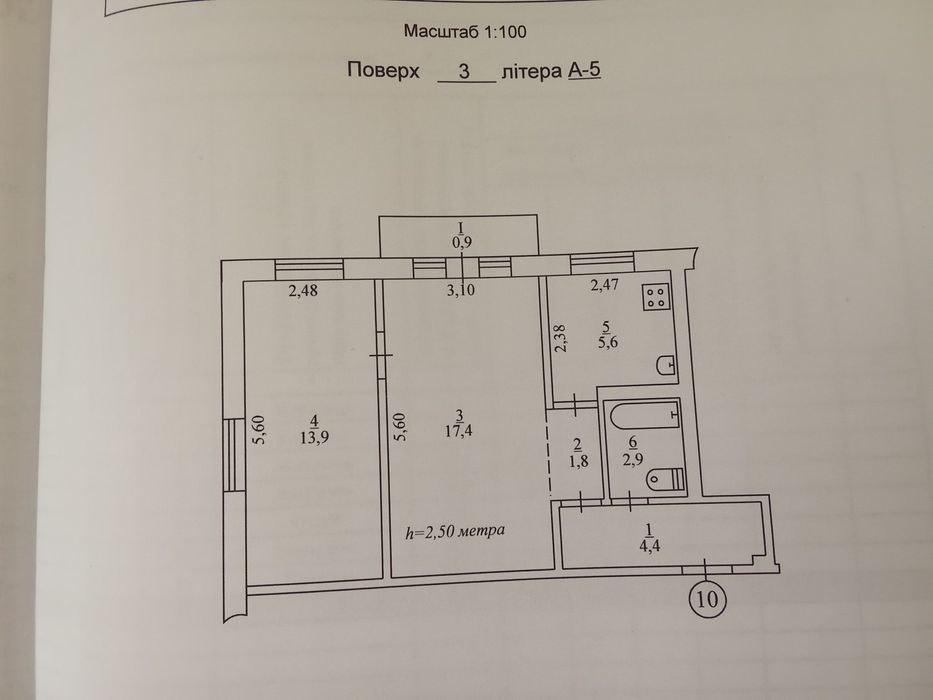 Общая площадь--46,90,кухня--5,6.