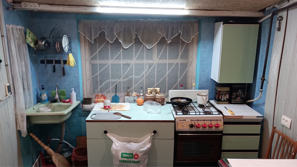 Будинок зараз без опалення(тільки груба),під заміну котел,труби,батареї.