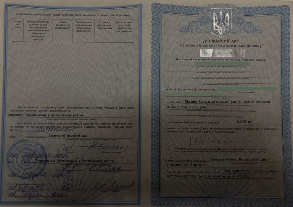 | Земельна ділянка: |